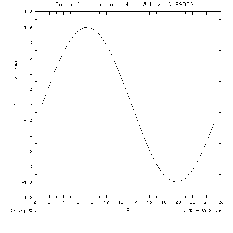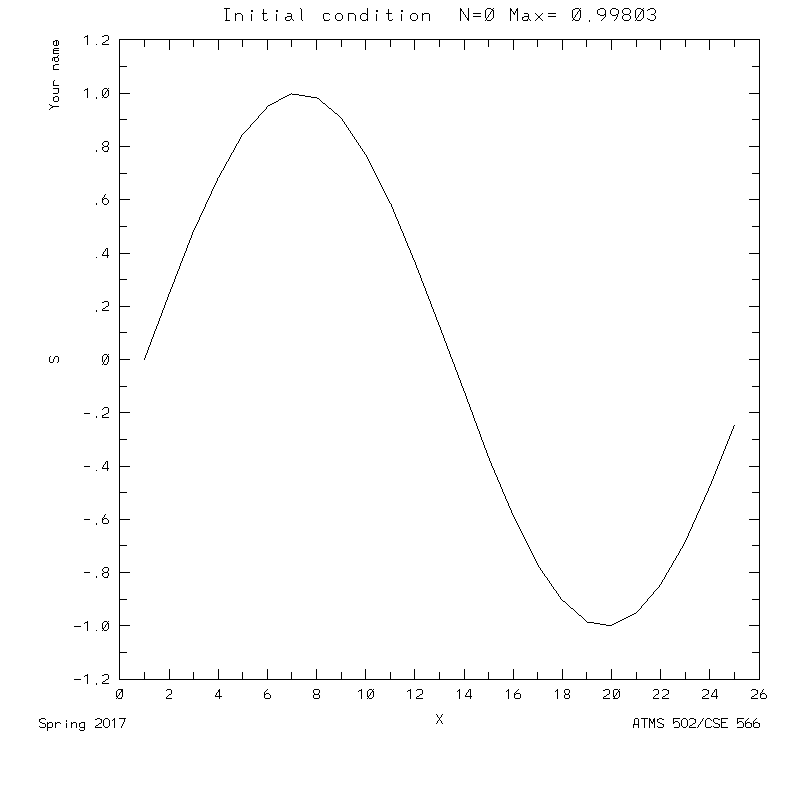 - Initial condition: Sine curve