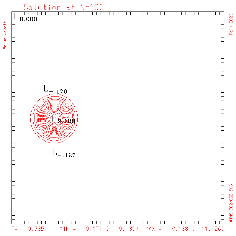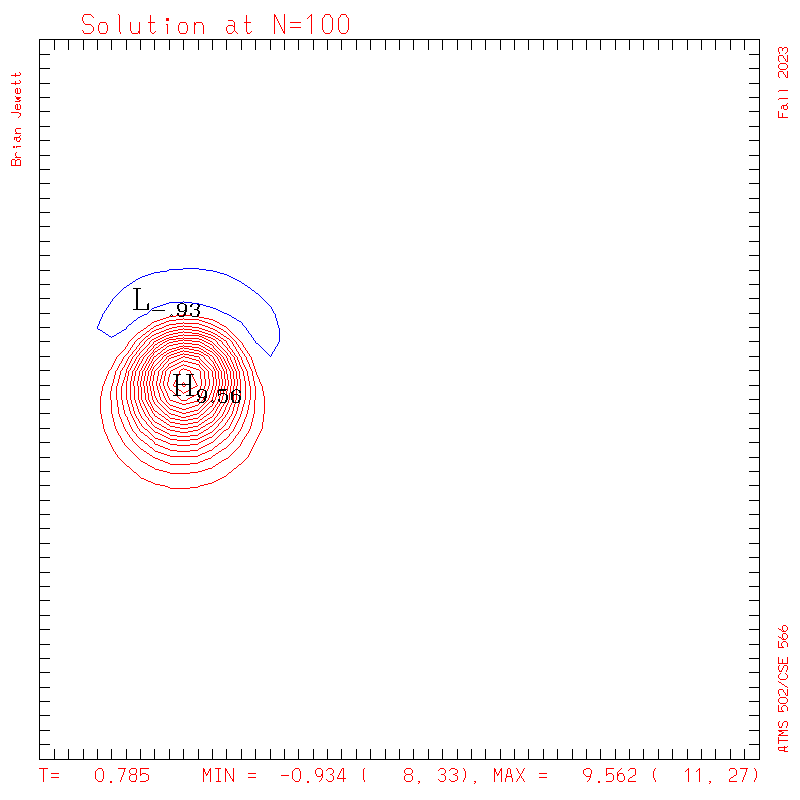 time step, print out results inside advect1d, and make sure