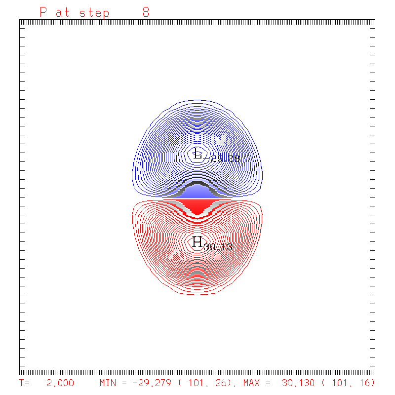 - Quasi-compressible sound speed Cs = 100 meters/sec